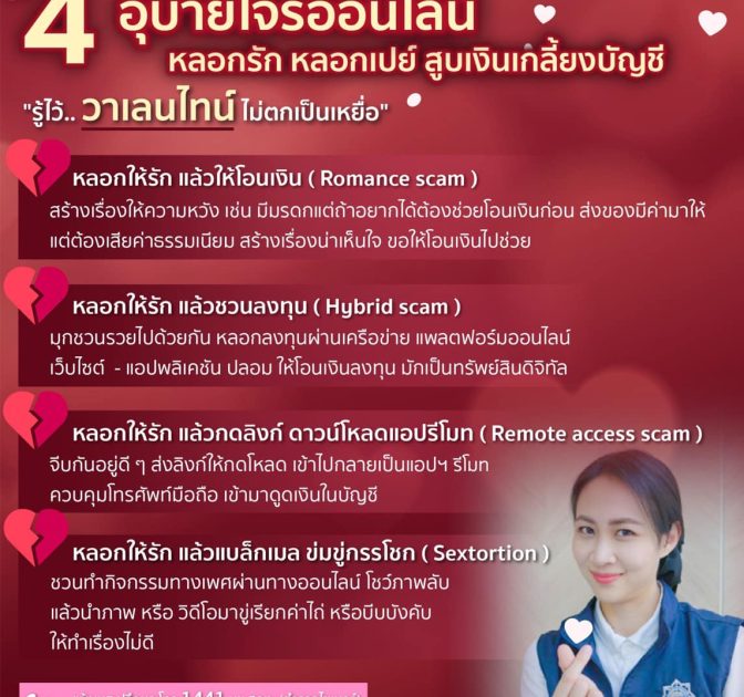 “รองฯ ลูกขวัญ” พ.ต.ท.หญิง ณพวรรณ ปัญญา รองโฆษกสำนักงานตำรวจแห่งชาติ เตือนภัย 4 อุบายโจร หลอกรัก หลอกเปย์ สูบเงินเกลี้ยงบัญชี