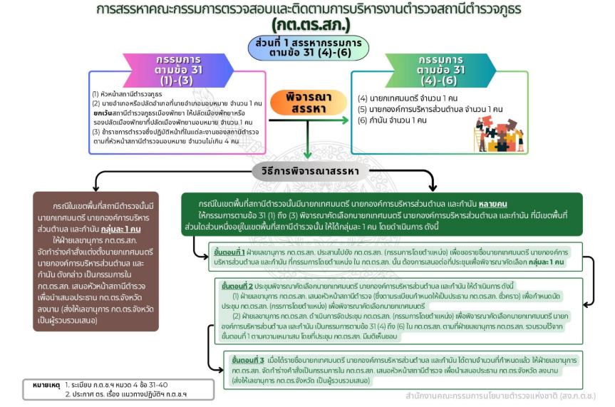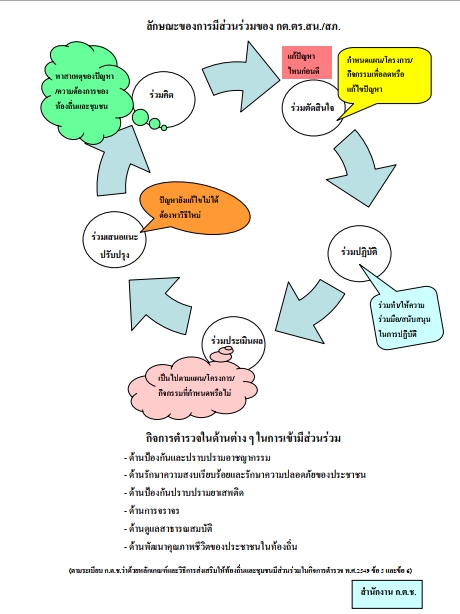 ” ให้สำนักงานตำรวจแห่งชาติส่งสริมให้ท้องถิ่นและ ชุมชนมีส่วนร่วมในกิจการตำรวจเพื่อป้องกันและปราบปราม การกระทำความผิดทางอาญา รักษาความสงบเรียบร้อย และรักษาความปลอดภัยของประชาชนตามความเหมาะสม และความต้องการของแต่ละพื้นที่ ทั้งนี้การคำเนินการมีส่วนร่วมให้เป็นไปตามหลักเกณฑ์และวิธีการที่ ก.ต.ช. กำหนด “