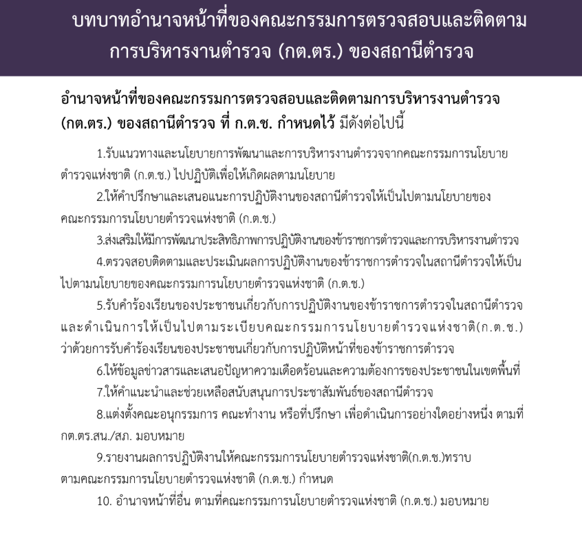 (1) คณะกรรมการตรวจสอบและติดตามการบริหารงานตำรวจแห่งชาติ เรียกโดยย่อว่า ” กต.ตร.”