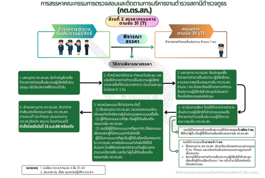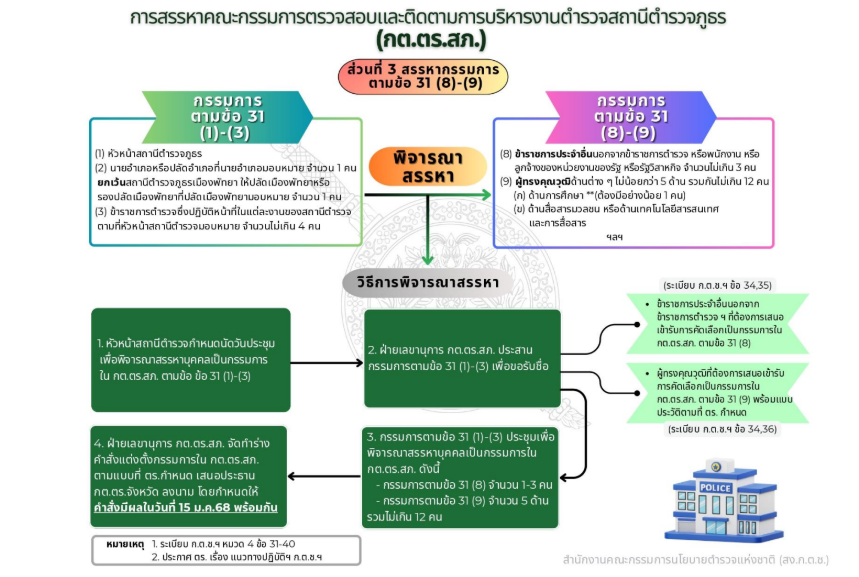3) พิจารณาคำเนินการคัดเลือกข้าราชการตำรวจเพื่อดำเนินการแต่งตั้งผู้บัญชาการตำรวจแห่งชาติตามที่นายกรัฐมนตรีเสนอ